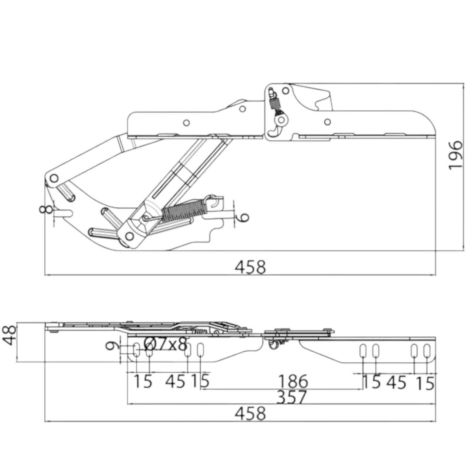 Acest mecanism este realizat din oțel metalic de înaltă rezistență, având un finisaj durabil care asigură stabilitate, siguranță și o durată de viață îndelungată, chiar și în condiții de utilizare frecventă.