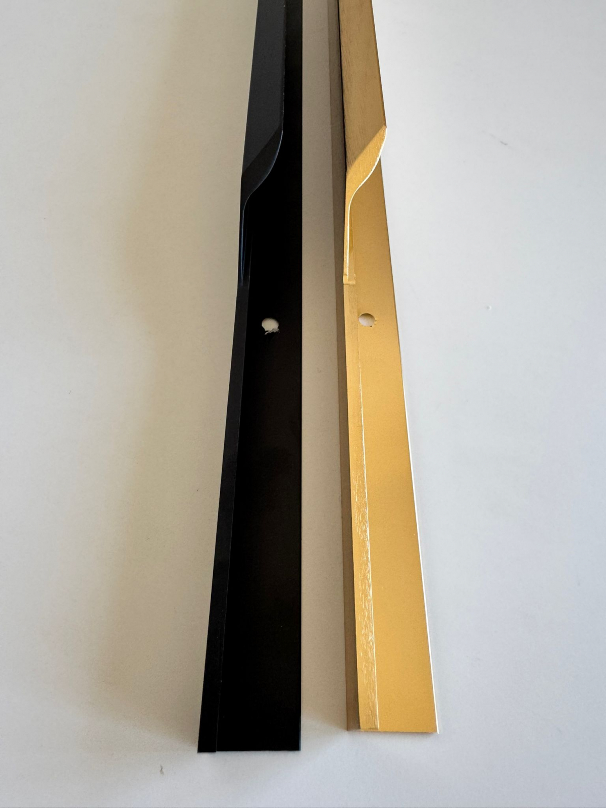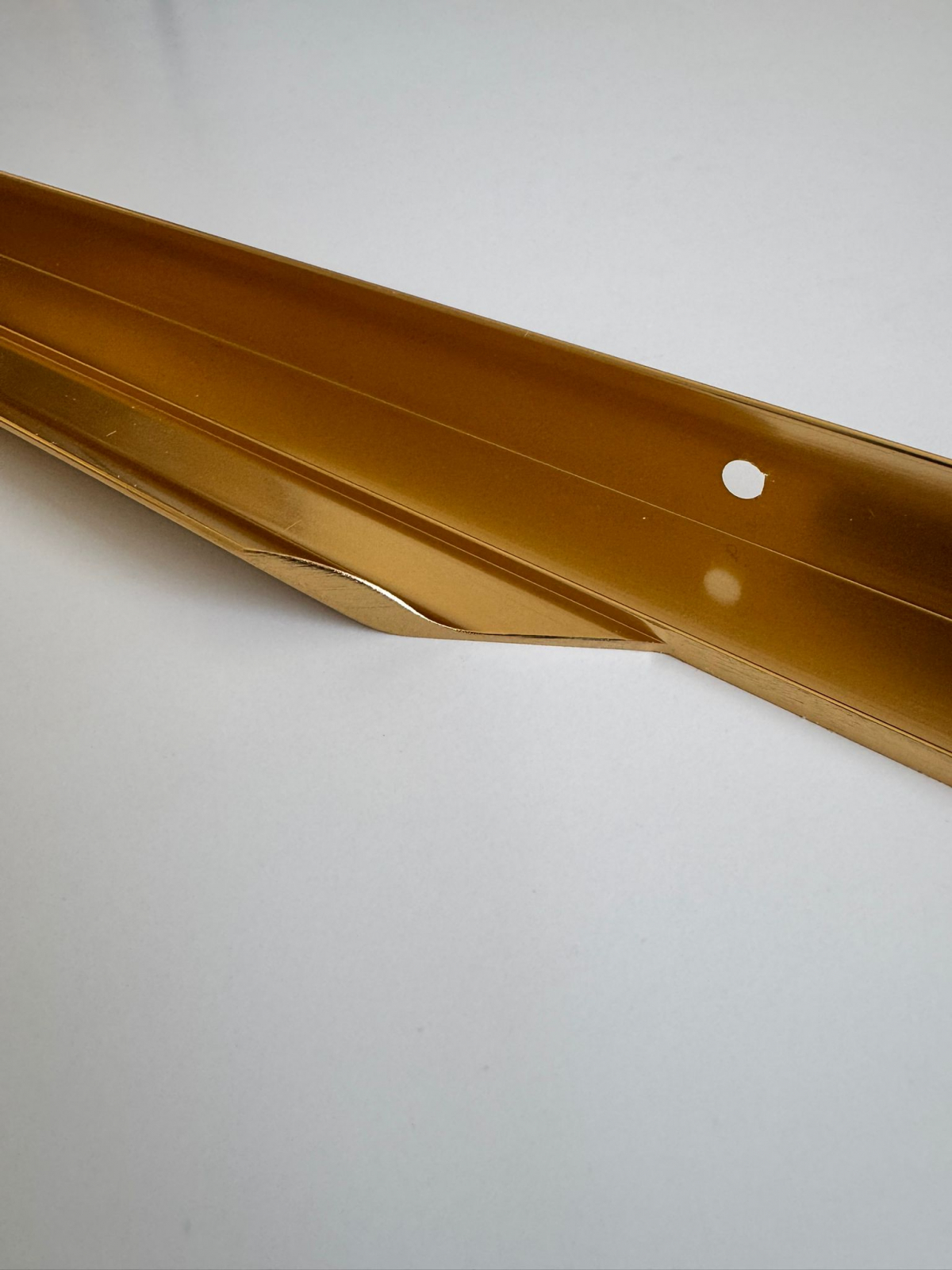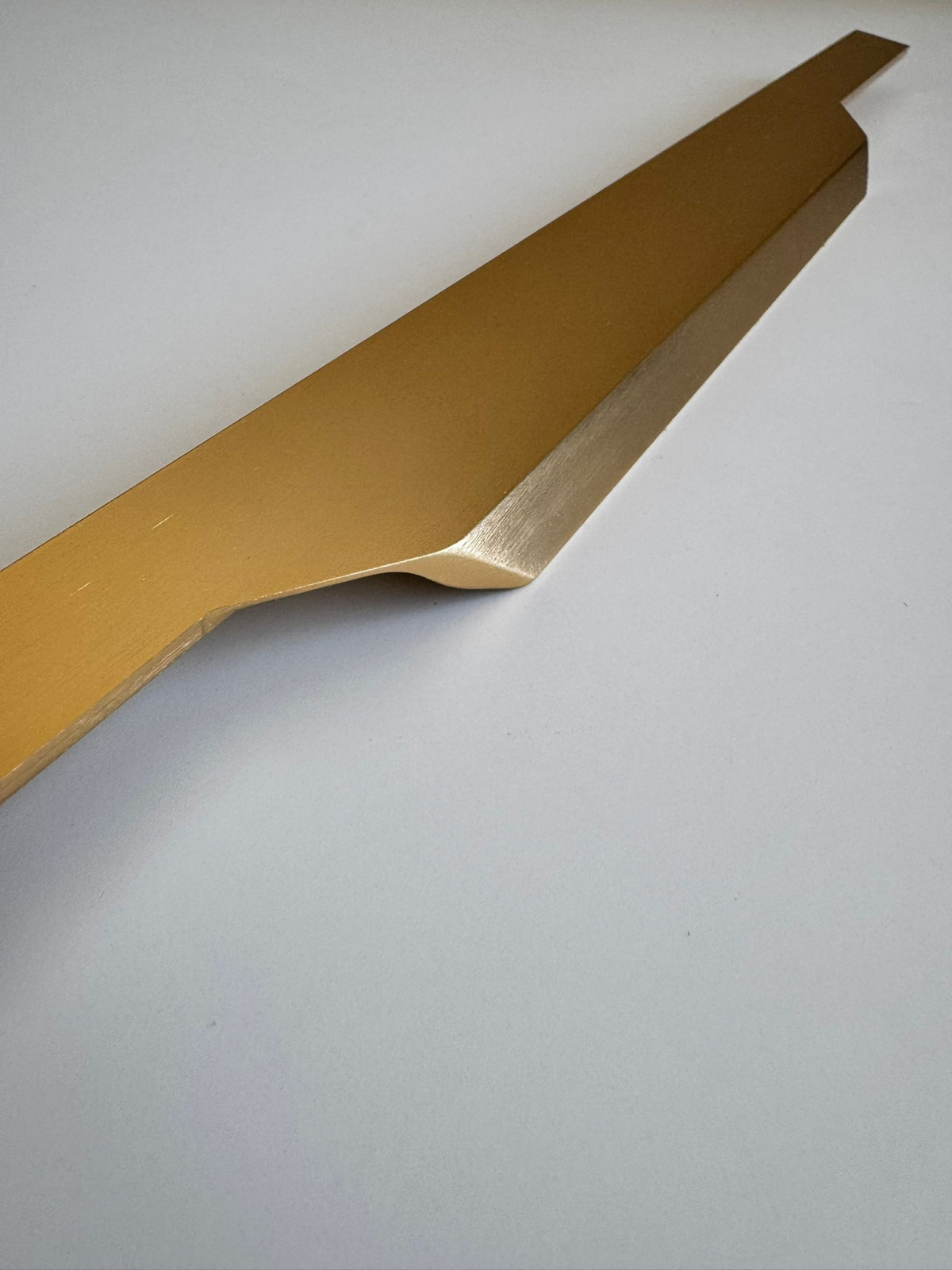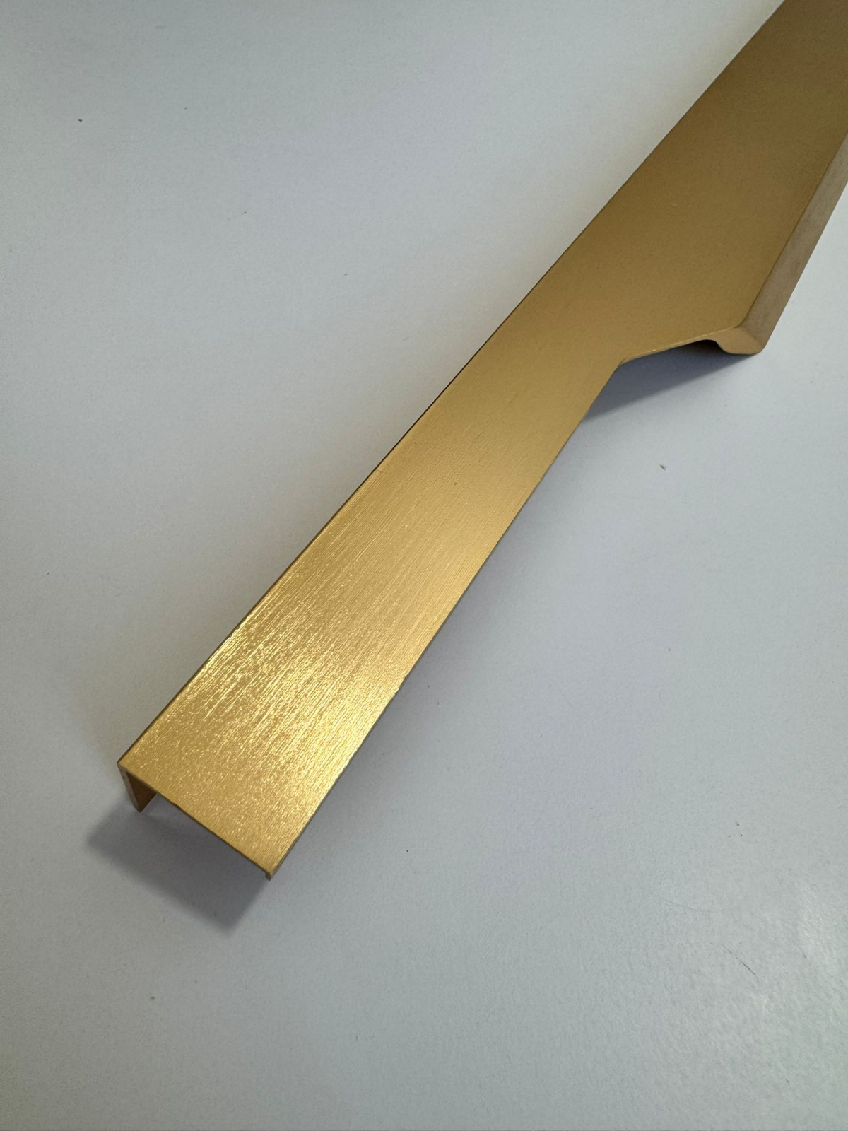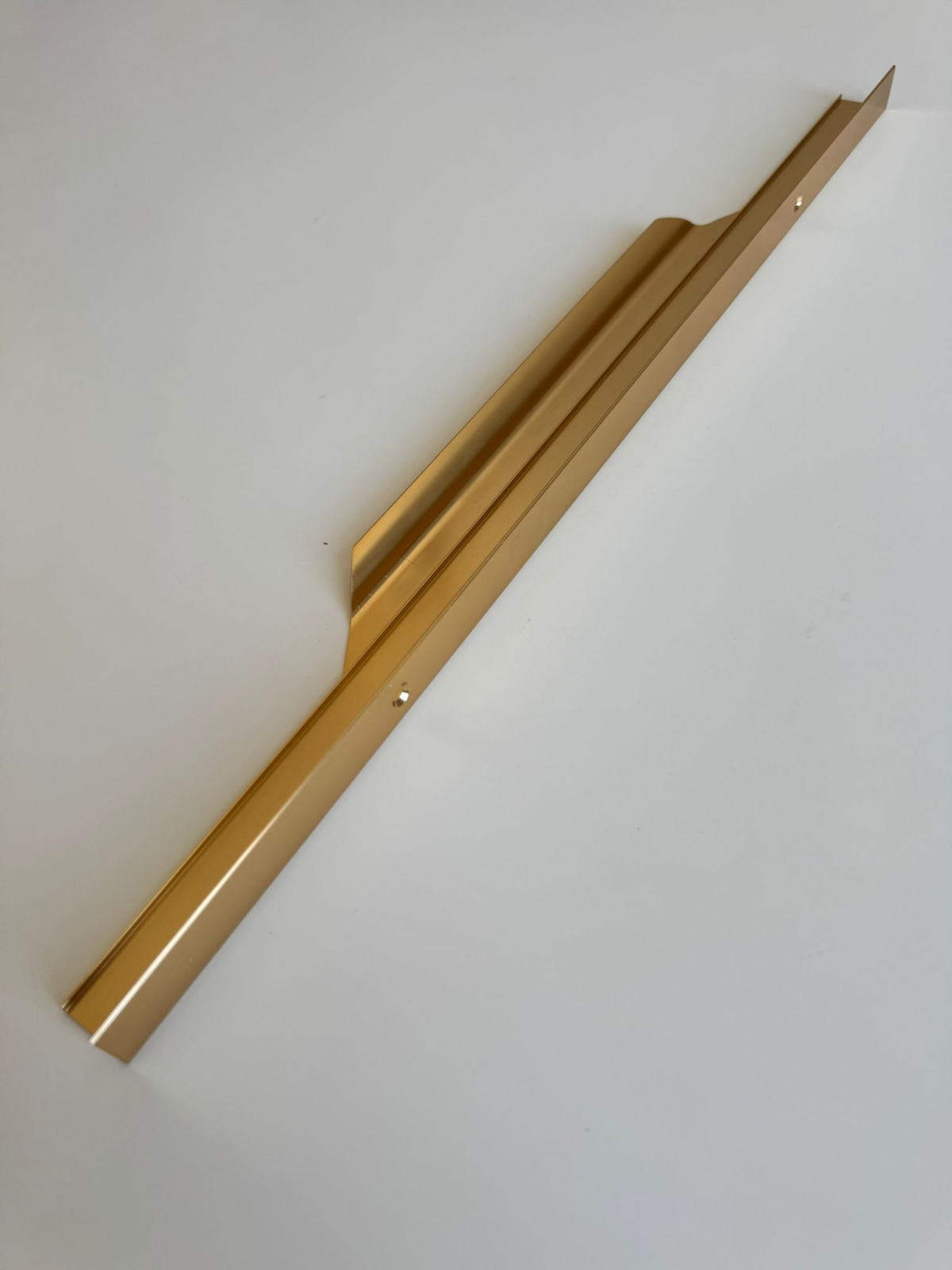 Forma sa modernă, conturată prin linii drepte și muchii delicate, evidențiază designul contemporan și creează un contrast armonios cu fronturile plane ale mobilierului. Tonalitatea aurului periat, elegantă și atemporală, adaugă un plus de prestigiu atât pieselor de mobilier noi, cât și celor recondiționate, transformându-le în elemente centrale ale încăperii.