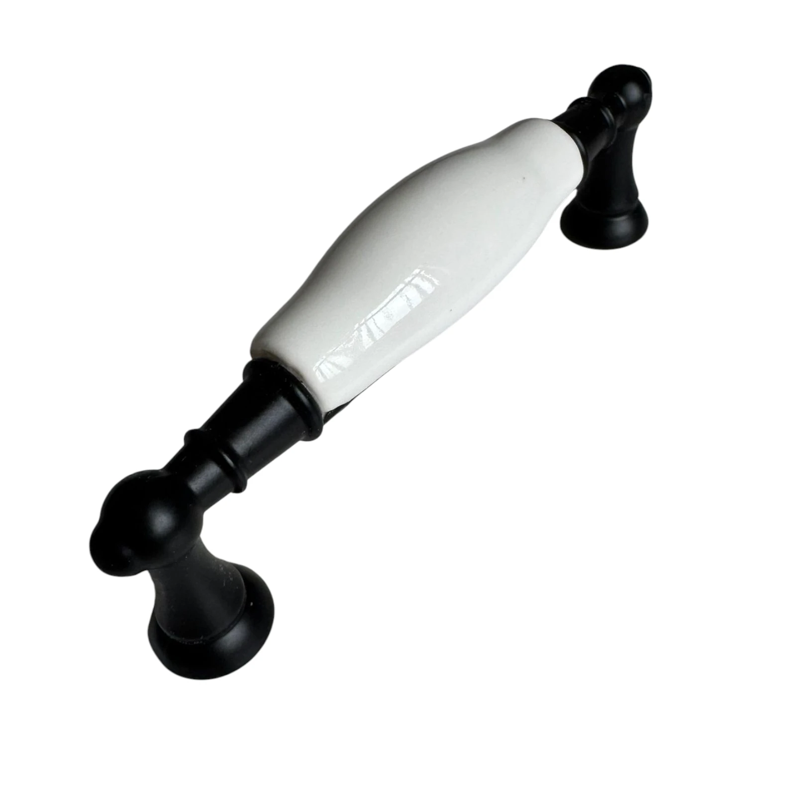 Maner mobilier Vintage ceramic alb cu capete metalice - 96 mm