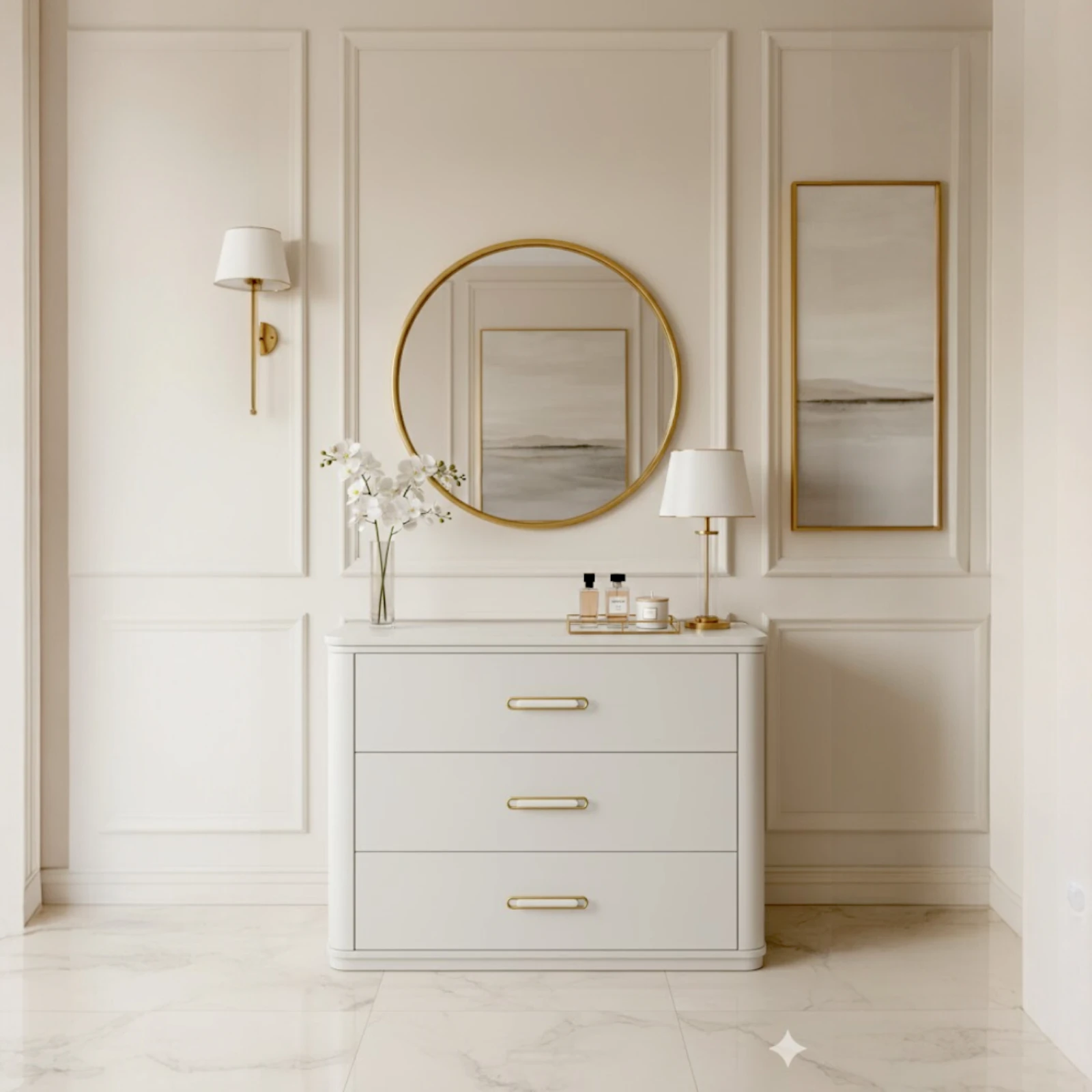 Deși este un accesoriu funcțional, Lungo Deluxe Alb & Auriu mat joacă și rol de accent vizual în proiectele moderne de mobilier. Această combinație de finisaje are capacitatea de a amplifica percepția de lumină și rafinament într-un spațiu: