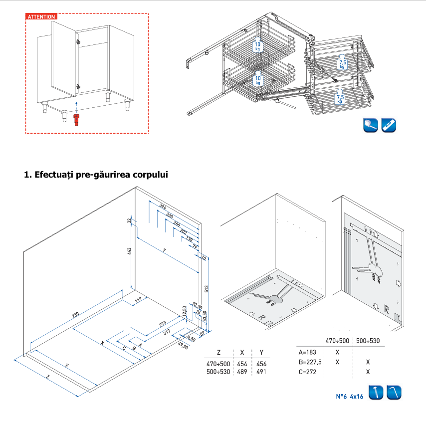 Investește astăzi în acest sistem de colț încorporabil și bucură-te de avantajele unui spațiu de bucătărie organizat, accesibil si eficient!