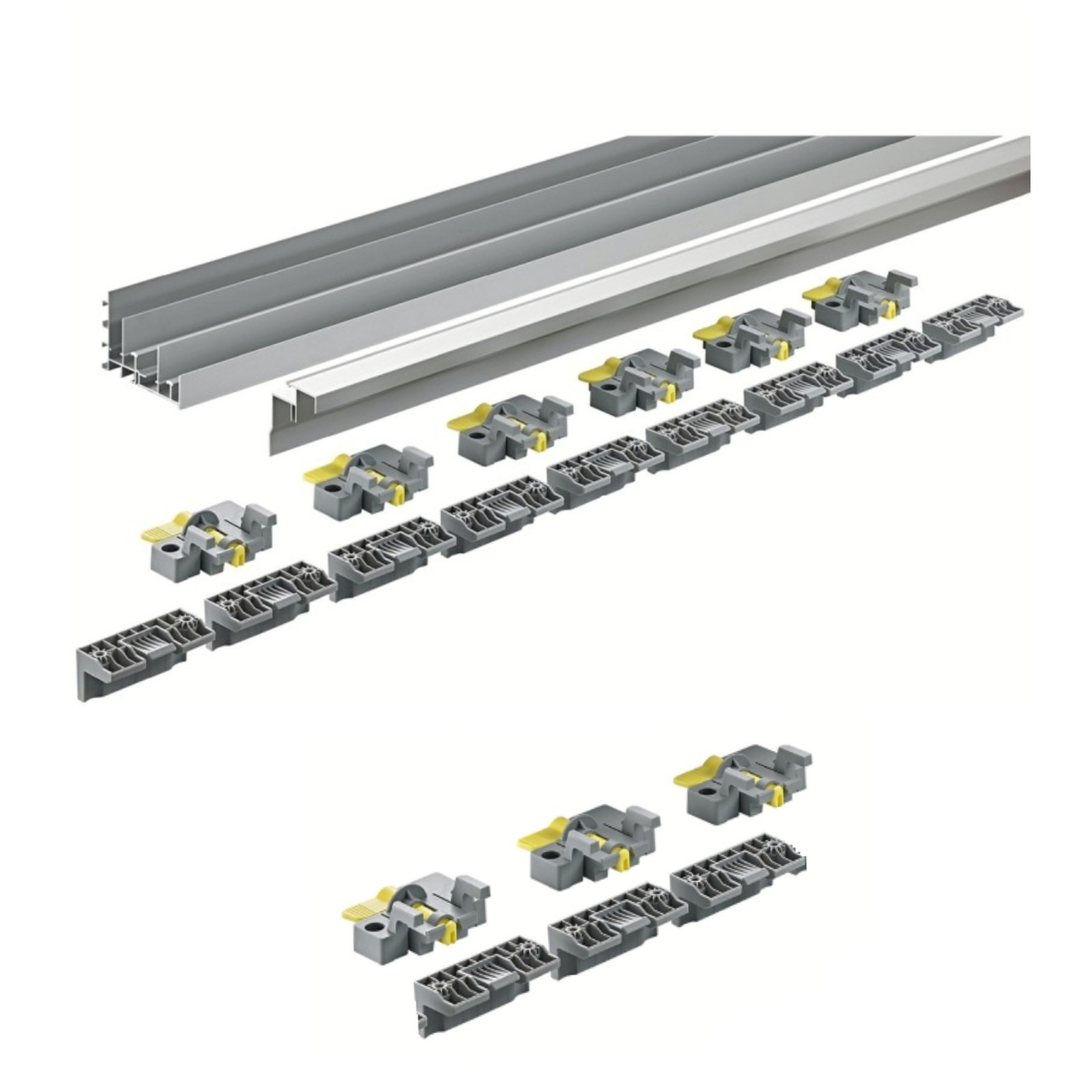 TopLine XL-Set profiluri aluminiu și cleme fixare de la HETTICH redefinește standardele sistemelor de culisare pentru uși de mobilier, combinând precizia ingineriei germane cu fiabilitatea materialelor premium. Conceput special pentru uși glisante de mari dimensiuni, acest set asigură o funcționare lină, silențioasă și durabilă, susținând o greutate de până la 80 kg per ușă, fără compromisuri în ceea ce privește stabilitatea și confortul utilizării.
